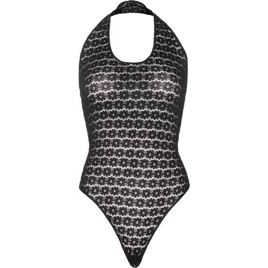 Body de encaje floral con cuello halter y cierre con broches de presión.